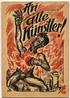 An alle Künstler! Berlin, 1919. 8°. 47 S. Mit Bildbeiträgen von Cesar Klein, Richter-Berlin, Lyonel Feininger, Milly Steger und Georg Tappert. Orig.-Broschur, farbig illustr. von Max Pechstein. Mit literarischen Beiträgen von Joh. R. Becher, Ludwig Meidner, Bernhard Kellermann, Max Pechstein, Walter Hasenclever, Kurt Eisner, Konrad Haenisch, Kurt Erich Meurer und Paul Zech. Mittig mit leichtem Knick. Ein Blatt am unteren Rand etwas knitterfaltig und mit kleinem Einriss.
