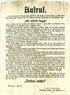 Aufruf. In allen Kreisen der Becölkerung hat sich seit den ersten Tagen des großen Ringens, in dessen Mittelpunkt unser geliebtes Vaterkand steht, eine bewunderunswürdige Kriegsenergie und Opferwilligkeit gezeigt. "Wir müssen siegen" lautet die Parole und aus ihr spricht das allgemeine Vertrauen in unsere Waffen, die Erkenntnis unserer gerechten Sache und die Zuversicht auf ihren endgültigen Erfolg ... "Viribus unitis!" Wien, am 15. Juni 1915. Wien, k.k. Hof- und Staatsdruckerei, 1915. OPlakat [ca. 74 x 54 cm]., Abbildung |
