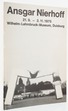 Ansgar Nierhoff. - Duisburg:, Horst E. Visser, 1975. (9) Seiten (Titelei), (47) Seiten (Abbildungsteil), (20) Seiten (Textteil), (63) Seiten (Werkverzeichnis), (1) Seite (Kolophon), graphisch illustrierte OKart., 29,5 x 21 cm. Mit eigenhändiger Signatur, mehrzeiliger Widmung und raumgreifender, sehr persönlicher Zeichnung (in zweifarbigem Kolorit) von Ansgar Nierhoff auf dem Titelblatt (März 1976, "für Herrn [Paul] Miggel"). - Anlässlich der Ausstellung vom 21.9. bis 2.11.1975 im Wilhelm-Lehmbruck-Museum, Duisburg, herausgegebenes Werkverzeichnis von Ansgar Nierhoff. - Mit 31, teils ganzseitigen Abbildungen im Abbildungsteil und vielen weiteren im separaten Werkverzeichnis (Arbeiten Nierhoffs aus den Jahren 1965-1975). - Die Texte von: Evelyn Weiss ("Gespräch mit Ansgar Nierhoff"), Karlheinz Nowald ("Das Tor") und Peter von Dahlen ("Produktionsästhetik - zum gesellschaftlichen Charakter moderner Kunst"). - Ansgar Nierhoff, 1941-2010, deutscher Bildhauer, Zeichner, Aktionskünstler, Kunsterzieher. "Ab Ende der 60er Jahre gestaltete Nierhoff zunächst Skulpturen aus rostfreiem poliertem Edelstahl. [...] Diese von Nierhoff als 'Assoziationsträger' bezeichneten Arbeiten zeigen einen harten Kontrast zwischen ihrer scheinbar perfekten, glänzenden, das Licht reflektierenden Oberfläche und den vom Künstler selbst gewaltsam herbeigeführten 'Störungen' bzw. 'Beschädigungen' durch Knicke, Zerknitterungen und Dellen" (AKL 92, 366f.). - Beiliegend 1.: 3 einfach geheftete DIN A4 Blätter; Blatt 1: Fotokopie von "Das Tor", darunter eine schwarzweiß Fotografie von selbiger Plastik, Standort vor dem Wilhelm-Lehmbruck-Museum (9 x 6,5 cm, quer; ob original oder späterer Abzug nicht festgestellt); Blatt 2: Eigenhändige Konstruktionsskizze in rotem Kolorit von Nierhoff (Objekt nicht identifiziert); Blatt 3: Eigenhändige Kontruktionsskizze in rotem Kolorit von "Das Tor" mit Maßangaben (Länge, Breite, Höhe). - Beiliegend 2.: Zeitungsartikel von Elke von Radziewsky aus der Wochenzeitung "Die Zeit" vom [26. Juli 1985]: "Spaß an der Ordnung. Ausstellung in Hannover: Ansgar Nierhoff" (1 Blatt, beschnitten). - Umschlag an Ecken und Kanten schwach berieben und bestoßen; sonst und insgesamt gutes, sauberes Exemplar.