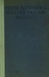 Was der Tag mir zuträgt. Fünfundsechzig neue Studien. Berlin, S. Fischer Verlag, 1924. 327 S. 8°, OHLn. Frontispiz mit Foto von Altenberg. Einband lichtrandig und gering berieben, Flecken auf Deckel, Ecken und Kapitale bestoßen, Wasserschaden an Ober-/Vorderschnitt. |
