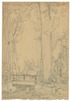 Clearing at the edge of the forest and big tree. Black chalk, surround by one line, on handmade paper, signed in blue ?Eliot Clark?, verso studio stamp. 22,8:30,4 cm. ?Son of the prominent Tonalist landscape painter Walter Clark, Eliot Clark came of age in his father?s New York studio surrounded by some of the foremost artists of his time, including John Twachtman, Edward Potthast, Joseph De Camp, and Frank Duveneck. He later recalled that he ?grew unconsciously in the association of artists, of studio talk and that smell of paint and turpentine.? Eliot also accompanied his father on painting trips, traveling in New England and to the American West in 1901. On these excursions, Clark was encouraged to experience, as well as to observe, in order that he might be able to compose landscape works based on memory, as well as detailed sketches. After a brief period of study at the Art Students League, Clark made the obligatory study trip to Europe in 1904. He did not enroll at one of the established academies, but instead traveled extensively on his own, observing old master paintings and painting en plein air at various sites favored by the Barbizon artists. Arriving in London in 1905, he made a special point of viewing a memorial exhibition of the works of James Abbott McNeill Whistler at the New Gallery. Afterwards, he wrote to his father that he admired Whistler?s ?use of color, and subtle arrangement of line and balance of masses.? That influence, and his development of a personal understanding of close color harmonics, is the most identifiable characteristic of Clark?s art. Not long after his return to New York in 1906, Clark opened a studio in the Van Dyke Studio Building where several other Tonalist painters also maintained spaces. From there, he began creating works with powerful light, minimal color differential, and an intentional focus upon the inherent grace of the passing moment. Deeply involved in the city?s art scene, he was elected an associate member of the National Academy of Design in 1917, an affiliation that would prove especially meaningful. Over the course of his career, Clark held the offices of corresponding secretary, vice-president, and finally as president of the organization from 1956?1959. He also served as curator/conservator of the Academy?s collection, stabilizing the large and disparate holdings and eventually publishing a comprehensive history of the institution in 1954. Clark authored a series of monographs on his favorite artists, favoring the work of such Impressionist and Tonalist masters as Childe Hassam and Gustave Courbet over his more modern contemporaries. During this same period, he taught classes at the Art Students League and exhibited widely. As a successful and well connected practitioner of the lingering Impressionist impulse in American art, Clark received invitations to serve as the annual visiting instructor at the Savannah Art Club in 1924 and 1925. For two consecutive winters, Clark reveled in the city?s lush environs, welcoming it as a point of new beginnings. His Savannah ?interlude was delightful. . . The picturesque city with its silvery southern light, its many gardens, and ancient live oaks hung with gray moss? entranced the artist. His work is represented in the Telfair?s permanent collection, as well as the collections of other institutions such as the Smithsonian American Art Museum, Washington, the Parrish Art Museum, Water Mill/New York and the Weisman Art Museum, Minneapolis.? (Zit.: thejohnsoncollection/eliot-clark).