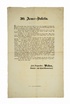 Edle Züge von Menschlichkeit und Wohlthun! Meine Herren Mitbürger und Kameraden! Es wird wohl Einigen von Ihnen bekannt seyn, daß, als in den Tagen nach Bekanntmachung der Abreise Seiner Majestät eine sehr üble Stimmung gegen unsere wackere akademische Legion in dem größten Theile unseres Mittelstandes herrschte [...]. Viel haben die löblichen Compagnien von Neulerchenfeld und Ottakring für unsere Studenten gethan, auch die Compagnien von Hernals und Josephstadt wollen ein Gleiches thun [...]. [Wien], Aus der k. k. Hof- und Staats-Druckerei, [30. Mai 1848]. Fol. Einseitig bedrucktes Flugblatt (Aushang). Flugblatt bezüglich der Unterstützung für die Akademische Legion. - Offenbar unbekannte Druckvariante, bei der die letzten drei Textzeilen zeitgen. überklebt wurden (letztes Wort des Textes: ?abzugeben?). - Kl. Knickspuren bzw. Randeinrisse. Etw. staubrandig.