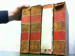 Histoire de Mathematiques. Hier in 4 Bänden komplett ! Histoire de Mathematiques. Dans laquelle on rend compte de leurs progres depuis leur origine jusqu'a nos jours; ou l'on expose le tableau et le developpement des principales decouvertes, dans toutes les parties des Mathematiques, les contestations qui se sont elevees entre les Mathematiciens, et les principaux traits de la vie des plus celebres. Nouvelle edition, considerabliment augmentee, et prolongee jusque vers l'epoque actuelle. Paris, Henri Agasse, 1799. 4°, Band 1.: VII, 739 Seiten mit einem Titelportait und 12 faltbaren Kupfertafeln im Anhang. Einband best. und Rücken mit kleiner Fehlstelle. / Band 2.: 717 Seiten mit 14 faltbaren Kupfertafeln im Anhang. Hinterer Buchdeckel lose und Rücken liegt lose bei. / Band 3.: VIII, 832 Seiten und 17 faltbaren Kupfertafeln im Anhang. Einband ber. und best. / Band 4.: 688 Seiten mit einem Titelportrait und 2 faltbaren Kupfertafeln im Anhang. Einband best. und Rücken faßt lose sonst guter Zustand - Betitelte OHalbledereinbände. 1799 - 1802 ! Die Bände könnten einheitlich neu eingebunden werden, sie sind Innen in sehr schönen Zustand ! Histoire de Mathematiques. Dans laquelle on rend compte de leurs progres depuis leur origine jusqu'a nos jours; ou l'on expose le tableau et le developpement des principales decouvertes, dans toutes les parties des Mathematiques, les contestations qui se sont elevees entre les Mathematiciens, et les principaux traits de la vie des plus celebres. Nouvelle edition, considerabliment augmentee, et prolongee jusque vers l'epoque actuelle. b77923.