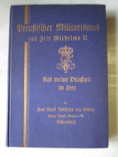 Preußischer Militarismus zur Zeit Wilhelms II. Aus meiner Dienstzeit im Heer Schweidnitz, Selbstverlag, 1938. 240 Seiten mit einigen Textillustrationen und Tafeln Gr.-8°, Leinen mit Goldprägung. Einband leicht berieben, Ecken etwas bestoßen, Seiten papierbedingt nachgedunkelt, sonst gut erhalten. Mit Besitzetikett von Paul Friedrich von Groszheim auf Vorsatz und Stempel des Familienwappens von Groszheim auf Titelseite.