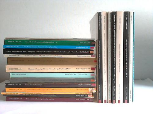 Sammlung von 23 verschiedenen Buchkatalogen aus 1988-1996 New York, Selbstverlag, 1988. 1996. Zusammen 4008 S. mit jeweils zahlreichen Abb., kartoniert, quart---- gute Exemplare / good condition / Text englisch, italienisch / Enthalten: Printed Books and Manuscripts including Americana / Christie's east. The Russian Library of an American Collector / Old Master, American and Modern/ Contemporary Prints and Multiples / American, Modern and Contemporary / Printed Books ans Manuscripts / American, Modern and Contemporary / Printed Books and Manuscripts including Americana from the Collection of Teh Hon J. William Middendorf II / Illuminated Manuscripts, Illustrated Books, Autograph Letters and Music. London / Printed Books and Manuscripts including Americana and Bookbindings / The Chevalier Collection of English. Twentieth-Century Bookbindings and a selection of Modern Continental/European Bookbindings / Old Masters, Contemporary, American and Modern Prints ans Illustrated Books / Early Printed Books and Manuscripts including Incunabula / Printed Books and Manuscripts including Americana / Christie's East. Printed Bookd, Autographs, Maps and Decorative Graphics / Valuable Continental Books and Fine Bindings / Valuable Printed Books and Manuscripts, Autograph Letters and Music. London / Medieval and Illuminated Manuscripts, Valuable Printed Books, Autograph Letters and Manuscripts, including the Edwin Wolf 2nd Collection of Nelson and Hamilton (Part II). London / Illuminated Manuscripts, Autograph Letters. Valuable Printes Books and Historical Bindings. London / Valuable Printed Books, Music and Manuscripts. London / The Dr. Sali Guggenheim Collection of French Illustrated Books. London / Fine Books from the Aldine Press, Venice: 1495-1566. London / Manoscritti, Autografi. Libri e Stampe. Rom -.