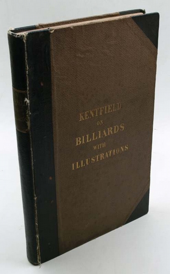 The Game of Billiards. Scientifically Explained, and Practically Set Forth, in a Series of Novel and Extraordinary, but Equally Practical, Strokes. London, John Thurston, 1850. Folio (225 x 341 mm). VIII, 54 pp. With double-sided lithograph frontispiece and 93 lithograph plates and diagrams. Original half brown cloth. Fifth, expanded edition of one of the most important early works on billiards and related games, by the man who reigned as "first player in the world" for more than twenty years. The frontispiece illustrates the interior of a billiard room with a table, lamp and furnishings manufactured by the publisher's firm. - Hinges and spine-ends rubbed and bumped, otherwise an uncommonly good copy showing almost no browning or foxing. - OCLC 15098795.