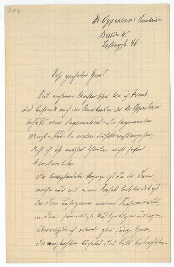Eigenh. Brief mit U. Berlin, o. D. 3 SS. 8vo. An einen namentlich nicht genannten Adressaten: "Seit mehreren Wochen schon bin ich krank und befinde mich im Sanatorium des Dr. Oppenheim behufs einer Regenerations - der sogenannten Mast- Kur. Sie werden deshalb wohl verzeihen, dass ich Ihr werthes Schreiben nicht sofort beantwortete. Die beanstandete Anzeige ist die der Dame, welche nur mit einem Korsett bekleidet ist. In dem Lesezimmer meines Konservatoriums, in dem sämtliche Musikzeitungen aufliegen, überraschte ich einmal zwei junge Herren, die verstohlen lächelnd das Bild betrachteten. Ich sah mich in Folge dessen genöthigt die betreffenden Männer aus dem Lesezimmer zu entfernen. Aber Sie, verehrter Herr, haben doch den Tadel nicht auf sich zu beziehen. Jeder weiß, dass der Redakteur einer Ztg. für die Anzeigen nicht verantwortlich ist, und gerade in Ihrer Ztg. ist der für die Anzeigen verantwortliche Redaktion genannt [?]".