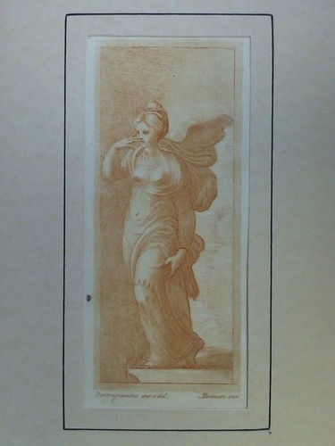 Frauenfigur mit wehendem Umhang - Radierung in Kupfermanier im Rötelton, nach Parmigianino um, 1780. Maße: ca. 8,5 cm x 20,5 cm, im Passepartout, (Blattrand gering fleckig)---.