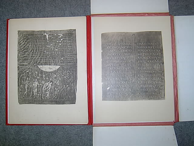 Die Wiener Genesis, Erste und Zweite Hälfte. 51 Tafeln von 52, es fehlt Tafel 38. (= Beilage zum XV. und XVI. Bande des Jahrbuches der kunsthistorischen Sammlungen des Allerhöchsten Kaiserhauses). Wien, Tempsky 1894-1895. 51 (von 52) schwarz-weisse Lichtdrucktafeln (ohne Trennblätter) in privater Leinenmappe der Zeit, Folio (ca. 42,5 x 31,5 cm),. Mappe stark fleckig, etwas bestoßen und mit späterem Beschriftungs-Etikett, ein Mappenflügel mit Bibliotheksstempel (ausgeschieden), einige wenige Tafeln etwas braunfleckig, die Rückseiten der Tafeln teils fleckig, Papier altersbedingt gebräunt, die Tafeln ansonsten ordentlich erhalten, (ES FEHLT TAFEL 38),.