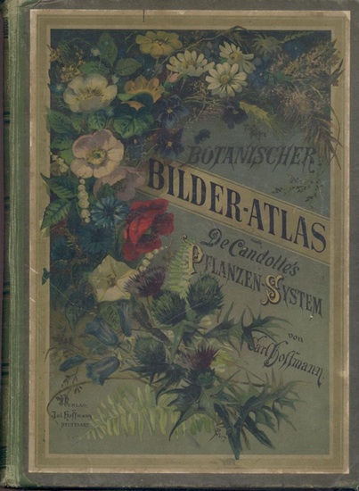 Botanischer Bilder-Atlas nach De Candolle's nat�rlichem Pflanzen-System. (Hoffmann, Stuttgart 1884). XXVI, 102 S. mit 507 handkolorierten Abbildungen auf 85 Tafeln. 4°. Illustr.-Hln. mit goldgepr�gtem R�cken. Starke Gebrsp. Kanten beschabt u. bestoþen. Gelenke mit Papierstreifen geklebt, hinteres Gelenk gebrochen. Titel, 1 Bl. u. S. 89-94 fehlen. Mehrere Bl. u. Taf. gebr�unt u. etwas fingerfleckig, teils kleine Einrisse. Text teils mit Bleistiftgekritzel. 1 Ta. f. verso mit Kugelschreibernotiz. Titel, Widmungsbl. u. am Schluþ 2 S. Erl�ut. zu Taf. 85 u. 4 S. des Registers fehlen. Die schönen Tafeln komplett u. mit wenigen Ausnahmen sauber u. gut. Originaleinband mit der schönen Deckelillustration. Erstausgabe.