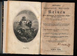 Hellenikos mythologisch-malerische Reisen durch Griechenland, den Archipelagus, Sicilien und Unter-Italien mit steter Rücksicht auf Wissenschaft, Kunst und Sitte der ältern und neuen Zeit. Leipzig, Verlag der Baumgärtnerschen Buchhandlung, 1835. o. A. (erste und einzige Auflage) Halbleder Titelergänzung: "Enthaltend die Sagen der Vorzeit der Griechen und Römer, nach den Gegenden erzählt und erklärt, welche der Schauplatz derselben waren, nebst einer Nachricht von den dadurch veranlaßten Werken der Bildhauerei und Malerei. Für junge Frauenzimmer und Jünglinge aus den gebildeten Ständen. [] Mit Kupfern und Holzschnitten der vorzüglichsten Künstler Deutschlands und Englands." Mit Vorwort und Anmerkungen. Originales Halbleder der Zeit, Einband nur leicht berieben u. bestoßen, innen gebräunt und papierbedingt braunfleckig, teils stärker, Vorsätze fachgerecht erneuert, insgesamt für das Alter guter Zustand des interessanten, sammelwürdigen Werkes. Die Tafeln (1 Frontispiz und 43 Kupferstiche sowie Holzschnitte, davon die letzten 2 auf einer Tafel) zeigen Gestalten der Mythologie sowie Skulpturen. 550 S. Oktav.