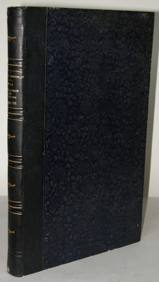 De la destination et de l`utilité permanente des pyramides d`Égypte et de Nubie contre les irruptions sablonneuses du désert Paris, Paulin, 1845. Mit 6 gestoch. Plänen. XXXI, 256 SS. Halbleder der Zeit mit vergoldetem Rückentitel, 4°. Einband wenig berieben, Vortitel mit hs. Notizen, wenig braunfleckig, gut erhaltenes Expl., Erste Ausgabe. - Ibrahim-Hilmy I, 231. Gay 1602: "Ouvrage volumineux dans lequel l?auteur voulait démontrer que ces constructions gigantesques étaient uniquement destinées à protéger la vallée du Nil contre l?invasion des sables du désert.",.