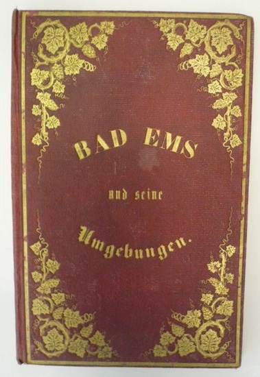 Bad Ems und seine Umgebungen. Darmstadt, Gustav Georg Lange 1858. Mit 17 (von 18) Stahlstichen. VI S., S. 3-50. Gr.-8vo. OLwd. mit reicher Gold- und Blindprägung. "Bilderwerk, wie ein gleiches über Ems noch nicht vorhanden sein dürfte" (Vorwort). - Seltenes Werk um Bad Ems, das "die merkwürdigsten Gebäude und Ansichten des Badeorts und seiner Umgebung" darstellt. - Der als Nassau stammende Elemantarschullehrer Henninger war Gründer einer privaten Lehranstalt in Oberursel und u. a. in der Redaktion des Lokalblatts "Der Taunusbote" beschäftigt. - Es fehlt das erste Textbl. sowie die Tafel "Ems vom Lustgarten". Tlw. stockfl., Buchblock gebrochen und Bindung gelockert, Einbd. berieben.