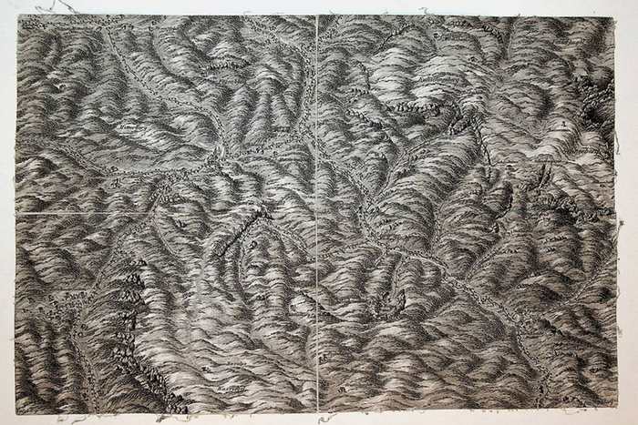 ?STERREICH-NIEDER?STERREICH-Schneeberg - Umbebung vom Schneeberg in V.U.W.W. - XLVI. (46.) Section - Schweickhardt von Sickingen, Franz Xaver: Perspectiv-Karte des Erzherzogtums Oesterreich unter der Ens. Wien, um 1835. Kupferstich, Perspektivkarte 29 x 43,5 cm in 4 Segmenten auf Leinen aufgezogen. Nebehay-Wagner Nr: 685 von 160 Sektionen der "Perspectiv Karte des Erzherzogthumes Oesterreich unter der Ens ... (1830 bis 46) sind nur 63 in Stichen erschienen Die Perspektivkarte zeigt u. a. Schneeberg, Kuhschneeberg, Hollental, Scheibwaldh?he.