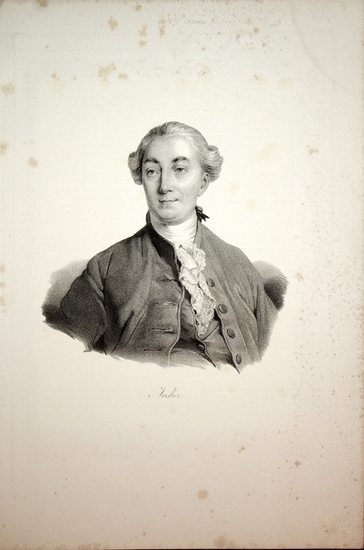 NECKER, Jacques Necker (1732-1804) Schweizer Bankier und franz?sischer Finanzminister ca. 1860. Portrait / Portr?t, Lithographie, Auf Tr?gerblatt montiert mit Stockflecken auf dem Tr?gerblatt, Tr?gerblatt ca.: 33,5 x 22,5 cm, Wasserrand.