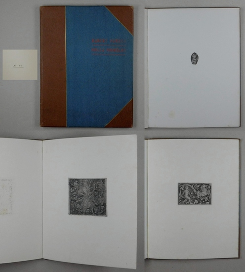 Abdrücke von Silberniellen und geätzten Eisenplatten des XV. und XVI. Jahrhunderts. 15 direkte Abdrücke von den alten Originalen in nur 70 numerierten Exemplaren für Sammlungen herausgegeben. (Titel auf dem Einband: Niello Abdrücke). Strassburg, Nicht im Buchhandel., 1904. 4°. 2 Bl. Text und 15 Tafeln. Originalhalbleinwandband mit rotegedrucktem Rücken- und Deckeltitel. Originalausgabe. - Nr. 63 von 70 Exemplaren. - Sehr seltene Publikation des Schweizer Kunsthistorikers, Sammlers und Archäologen Robert Forrer (1866-1947), der den grössten Teil seines Lebens in Strassburg verbrachte. Er war einer der profundesten Kenner früher Technologien und Verfasser vieler kunsthistorischer und archäologischer Monografien. "Als Niellen oder Nielli (Einzahl Niello) bezeichnet man auch Druckgraphiken auf Papier oder anderen Trägern, die durch den Abdruck von nach Art der Niellotechnik gravierten Platten entstanden, dabei handelt es sich um ein Tiefdruckverfahren. Die in die Platte gravierten Eintiefungen werden nicht mit der Niellopaste gefüllt, sondern mit Farbe bestrichen und ergeben so im Abdruck auf Papier ein seitenverkehrtes Bild der gravierten Stellen". (Wikipedia). - Eine Ecke bestossen. Schnitt und wenige Bl. leicht stockfleckig.