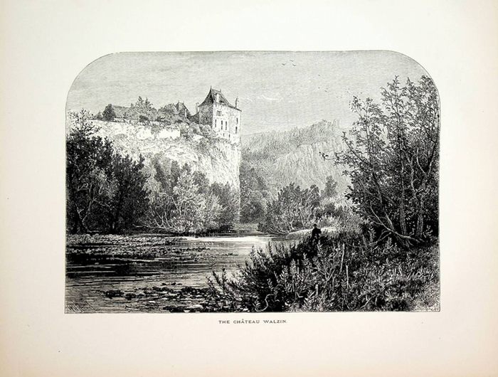 WALZIN, Le ch?teau de Walzin, Belgique vue ca. 1875 ca. 1875. original xylographie, Format ca. 16,5 x 23 cm. Antique Print, antike Grafik.