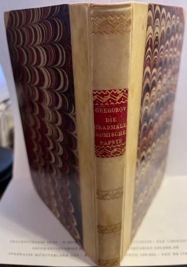 Die Grabmäler der Römischen Päpste. Historische Studie. Leipzig, Brockhaus., 1857. [4 nn] Bll. 242 S. Kl. Oktav aufwendiger Halbpergament-Handeinband mit goldgeprägtem, farbigen Lederrückenschild und gestickten Kapitalen und Buntpapierbezug. ADB 49, 526. Erste Ausgabe in äußerst dekorativem und wohlerhaltenem Einband.