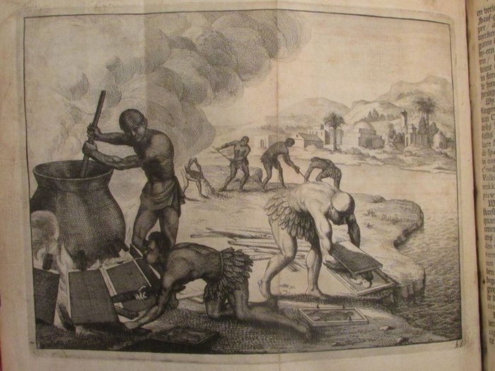 Naaukeurige Versameling der gedenk-waardigste Zee en Land-Reysen na Oost en West-Indien, Mitsgaders andere Gewesten, ter eerster Ontdekking en soo vervolgens van verscheyde Volkeren, meerendeels door Vorsten, of Maatschappyen der waarts gesonden, gedaan; zedert het Jaar 1593 tot 1599. Leiden, Pieter vander Aa, 1707. Ganzpergamentband der Zeit mit Rückentitel; Buchdeckel mit blindgeprägter Ornamentik. Sammlung von Reisebeschreibungen, die 1707 in einer Reihe des Leidener Verlegers und Buchdruckers Pieter vander Aa erschien. Die gesamte Reihe umfaßte Reiseberichte im Zeitraum von 1246 bis 1696 und wurde seinerzeit in 28 Bänden veröffentlicht. Vander Aas Verlag war berühmt für seine anspruchsvolle Reise- und Entdeckerliteratur, ferner für naturwissenschaftliche, bevorzugt botanische und medizinische Literatur sowie für Atlanten und Ansichtenwerke. Der hier vorliegende Band enthält die folgenden 9 Reisebeschreibungen: I. Reys door de straat van Magellanes in't Jaar 1593 . Mitgaders Engelse Reysen na de Bermudas mof Summer-Eylanden. En eerst Hendrik May's Schip-breuk daar ontrent in't Jaar 1593 (26 S., 2 Bl). II. Reys-Togten Van Johan Smith . in het Jaar 1593 (81 S., 5 Bl.). III. Drie Sheeps-Togten Guiana, in America gelegen, door den Engelssen Ridder Walther Ralegh, gadaan in de Jaren 1595. 1596. 1597 (64 S., 4 Bl.). IV. Benjamin Woods ongelukkige Reys na Ost-Indien, met drie Schepen 1596 (13 S., 1 Bl.). V. De Voyagien van Johan Davis, gedaan na Oost-Indien, in de Jaren 1598 en 1604 (49 S., 3 Bl.). VI. Berigt van een Mahometaans Koopman, aanga ande Cambalu, Mitsgaders moeijelijke Reys van Benedictus Goes, gadaan va Lahor over Land door Tartaryen na China. In't Jaar 1598 (24 S., 2 Bl.). VII. Twee Breieven van William Adams; wegens sijn Reys uyt Holland na Oost-Indien, metvijf Schepen, Anno 1598 en vervolgens (24 S., 1 Bl.). VIII. Opmerkelyke Reystogten van den Heer Antony Sherley, gedaan in den Jahre 1599 na Persien (41 S., 1 Bl.). IX. Reysen van Johan Mildenhal, na de Landen van Persien, en die van de Grooten Mogol gedaan . a. 1599 en 1600 (54 S., 3 Bl.). Alle Berichte mit separatem Titelblatt, dieses jeweils mit gestochener Illustration, sowie mit separatem Register im Anhang. Enthalten sind insgesamt 22 ausfaltbare Kupferstich-Illustrationen, darunter 4 Karten. Der Einband etwas angestaubt und etwas fleckig, Buchrücken mit kleiner Schramme am unteren Kapital. Sonst aber in gutem Zustand; Seiten sauber und nahezu fleckenfrei sowie ohne nennenswerte Bräunungen; die Kupfertafeln in kräftiger Konturierung und guter Erhaltung. In toto gutes Exemplar dieser faszinierenden Sammlung von Reisebeschreibungen des späten 16. Jahrhunderts. Zahlreiche weitere Fotos auf der Homepage des Antiquariats (bitte Art.-Nr. auf der Angebotsseite in das Suchfeld eingeben). Cover a bit dusty and a bit stained, the spine has a small scratch on the lower capital. Otherwise in good condition; Pages clean and almost spotless as well as without noteworthy browning; the copper plates in strong contouring and good condition. Overall a good copy of this fascinating collection of late 16th century travelogues. A lot of more photos on the antiquarian website (please enter the item number in the search field on the offer page). Band wat stoffig en gevlekt, rug met klein krasje op onderkapiteel. Verder in goede staat; Pagina's schoon en bijna smetteloos en zonder noemenswaardige bruining; de koperen platen in sterke contouren en goede staat. Al met al een goed exemplaar van deze fascinerende verzameling laat 16e-eeuwse reisverhalen.