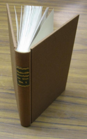 Mahlerische Streifzüge durch die interessantesten Gegenden um Wien: Vom Verfasser der Streifzüge nach Venedig und Istrien. Erstes Bändchen (von 4): Erster mahlerischer Streifzug nach Laxenburg, Schönau und Vöslau. (= Taschenbuch für Freunde schöner vaterländischer Gegenden). Wien, Anton Doll, 1805. Erste Ausgabe. Kl.-8°. Neuer, brauner Ganzleinenband mit goldgeprägtem Rückentitel auf grünem Rückenschild. Originalumschlag mit eingebunden, nur dieser stärker angeschmutzt und etwas fleckig. Ordentlich ausgeschiedenes Exemplar der Bibliothek Nikola Wien mit Stempeln auf der Titel- und den Tafelrückseiten, sonst keine Kennzeichnungen. Zwei gestochene, illustrierte Titel, 152 Seiten und weitere 6 Kupfertafeln (gest. von J. Blaschke). Im Innenbereich überwiegend schön sauber. Eintragungsfrei, Seite für Seite genau überprüft. Gutes Exemplar. Mit dem einleitenden Aufsatz: Niederösterreichs Größe, Bevölkerung und Landbewohner im Allgemeinen. Uiber die Sucht der Städter, auf dem Lande sich anzusiedeln, und ihre Verhältnisse zu den Landleuten. GeoVit.