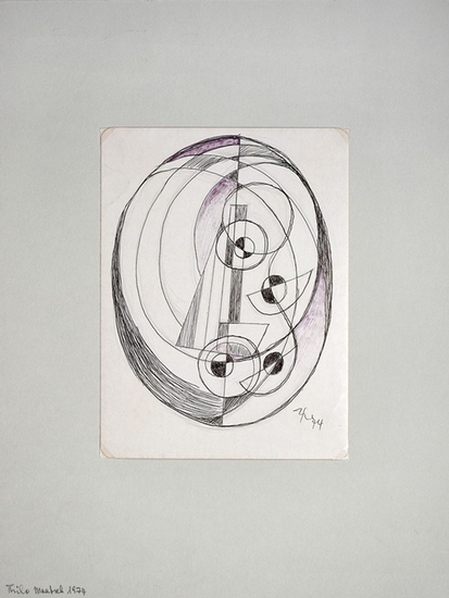 Geometrische Komposition. [19]74. [Signierte Original-Zeichnung / signed original drawing]. _. Thilo Friedrich Maatsch, geboren am 13. August 1900 in Braunschweig, gestorben am 20. März 1983 in Königslutter. Deutscher Grafiker, Maler und Bildhauer der abstrakten und der konkreten Kunst sowie des Konstruktivismus. 1918 gründete Maatsch mit Rudolf Jahns und Johannes Molzahn die "Gesellschaft der Freunde junger Kunst" in Braunschweig. Mitgliedern waren u. a. Lyonel Feininger und Paul Klee. Wassily Kandinsky, der Maatsch förderte und den Maatsch wie seinen Vater verehrte, entwarf das Signet der Gruppe. Maatsch studierte in den Ferienwochen am Bauhaus in Weimar und später Dessau und war Mitglied der Novembergruppe. Original-Zeichnung mit schwarzem Kugelschreiber und Farbstift auf weißem Karton. Unterhalb der Abbildung von Thilo Maatsch in Schwarz monogrammiert und datiert (74). Maße Blatt: 22,0 x 16,5 cm. Maße Abbildung: 19,5 x 14,5 cm. Blatt mit leichten Gebrauchsspuren. Provenienz: Aus dem Nachlass des Kunstsammlers und Autors Ralf Seilheimer. Guter Zustand. Original drawing with black ballpoint pen and colored pencil on white cardboard. Monogrammed and dated (74) in black below the image by Thilo Maatsch. Sheet dimensions: 22.0 x 16.5 cm. Dimensions illustration: 19.5 x 14.5 cm. Sheet with slight signs of wear. Provenance: From the estate of the art collector and author Ralf Seilheimer. Good condition.
