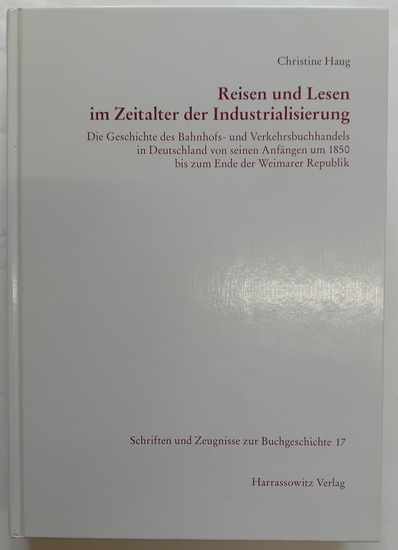 Reisen und Lesen im Zeitalter der Industrialisierung. Die Geschichte des Bahnhofs- und Verkehrsbuchhandels in Deutschland von seinen Anfängen um 1850 bis zum Ende der Weimarer Republik. Wiesbaden (Harrassowitz) 2007. 415 S., Fester Pappband . Illustriert. Gr.-8°. Schriften und Zeugnisse zur Buchgeschichte 17 (Schriften und Zeugnisse zur Buchgeschichte 17) Tadelloses Exemplar.