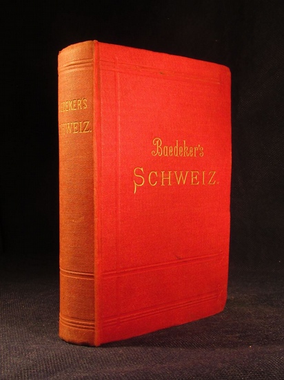 Die Schweiz nebst den angrenzenden Theilen von Oberitalien, Savoyen und Tirol. Handbuch für Reisende. Leipzig, Karl Baedeker, 1889. Dreiundzwanzigste (23.) neu bearbeitete Auflage. XXVIII 479 S. Roter Original-Ganzleinenband mit goldgeprägtem Rücken- und Deckeltitel sowie dreiseitigem Pfauenschnitt. Mit 38 Karten, 11 Stadtplkänen und 11 Panoramen sowie mit Register im Anhang. Buchrücken leicht aufgehellt; ein Blatt etwas randfleckig. Sonst sehr gutes, augenscheinlich ungelesenes Exemplar; Pfauenschnitt wie neu.