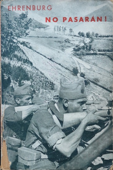 No Pasaran! (Sie kommen nicht durch!) Vom Freiheitskampf der Spanier. London, Malik-Verlag, 1937. Umschlagentwurf von John Heartfield. Aus dem Russischen übersetzt von Lotte Schwarz. Englische Broschur, 220 Seiten, 19 x 13 cm. Umschlag mit Randbeschädigungen und kleiner Fehlstelle, Namensetikett auf dem Vorsatz.