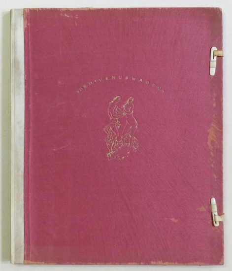 Die Kirschen. Lithographien von Wilhelm Wagner. (Der Venuswagen. Eine Sammlung erotischer Privatdrucke mit Original-Graphik : Erste Folge. Herausgegeben von Alfred Richard Meyer). Fritz Gurlitt, Berlin, 1920. 4°, 45 S., mit 7 ganzseitigen Original-Lithographien von Wilhelm Wagner, Original-Halbpergament -Einband mit illustrierten Seidendeckeln und seitlichen Steck-Schließen (Seidenbezug der Deckel leider stellenweise abgerieben,. Rückdeckel etwas fleckig) *Nr. /34 von 700 Exemplaren, im Impressum von Wilhelm Wagner signiert. *Wilhelm Wagner (* 26. April 1887 in Hanau - 22. August 1968 in Bad Saarow), deutscher Maler, Zeichner, Buchillustrator und Grafiker. (OBM).
