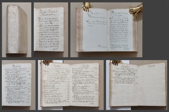Memorial eines Zürcher Mitglieds der Stadtverwaltung aus dem Jahr 1713. Sauber geschriebenes Originalmanuskript. Zürich, 1713. Kl.-8°. 5 w. Bl., 4 S. Register, 4 w. Bl., 343 S., 92 w. Bl. Pergamentband der Zeit. Beginnt mit einer Historisch-politische Beschreibung Anno 1713 unternommenen Reformationsgeschäftes sowie alle wichtigen Ratsbeschlüsse vom 9. September bis 16. Dezember. Nach Seite 85 folgt ein Memorial der H.H. Deputierten von Lobl. Bürgerschaft.... - «Nach den Waldmannschen Unruhen wurde 1498 der Geschworene Brief revidiert und die Macht des Zunft-meisterkollegiums auf ein erträgliches Mass beschränkt. Diese Verfassung blieb inhaltlich bis 1713 massgebend, abgesehen von einer inhaltlich nicht relevanten Neuauflage von 1654. Im Lauf des 16. und 17. Jahrhunderts war jedoch der Einfluss weniger mächtiger Familien und Sippen ständig gestiegen und der politische Einfluss der einfachen Handwerkerzünfter gesunken. Der Trend zu oligarchischen Verhältnissen, getragen von einer reichen Schicht von Kaufleuten, Textilverlegern, «Rentiers», Offizieren und hohen Beamten aus vielleicht drei Dutzend Familien mit einem Kern von etwa einem halben Dutzend, hatte sich gegen 1700 endgültig durchgesetzt. Handwerker bildeten in den Räten eine Minderheit von teils weniger als einem Drittel der Mitglieder. Als man aber 1712 einen reinen Handwerkerstreit im exklusiven Rat und nicht in den dafür zuständigen Zunftgremien abhandelte, fühlten sich die einfachen Zünfter in ihren herkömmlichen Rechten verletzt, und es kam zu Unruhen. Es wurde eine «Ehrenkommission» eingesetzt, die die «eingerissenen Missbräuche» gegen die «heilsamen Grundsatzungen» des Standes Zürich beheben sollte. Das Resultat der Kommissionsarbeit war - wenigstens suggerieren dies die Historiker des 20. Jahrhunderts - bescheiden: Mittels Ratsbeschluss wurde die geheime Wahl auch für die Zunftmeister eingeführt. Der Geschworene Brief wurde sprachlich modernisiert und zusätzlich die Souveränität der ganzen Stadtgemeinde betont. (Mit und neben dem Rat musste bei Kriegserklärungen, Friedensschlüssen, Bündnisverträgen und Verfassungsänderungen die Gemeinde beigezogen werden.) Die Revision der Verfassung blieb in ihren Resultaten eben gerade wegen des guten Funktionierens der staatlichen und gesellschaftlichen Mechanismen beziehungsweise wegen des empfindlichen Gleichgewichts des ganzen Systems in bescheidenem Rahmen. Der «siebte Geschworene Brief» von 1713 war die erste Verfassung des Standes Zürich, die gedruckt wurde. Sie wurde in dieser Form der Konstaffel und den Zünften übermittelt, wo die Bürger Einsicht nehmen konnten. Damit war erstmals auch Verfassungsöffentlichkeit gewährleistet.» (Otto Sigg in Kleine Zürcher Verfassungsgeschichte 1218-2000. S. 33 ff. Hrsg. vom Staatsarchiv des Kantons Zürich).
