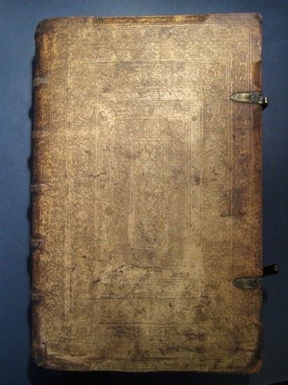 Der Fünffte Teil aller Bücher und Schrifften.. vom XXX. jar an, bis auffs XXXIII. Jhena (Jena), Donattus Richtzenhan u. Thomas Rebart 1566. 4°. 6 Bll., 536, 1 Bll. Mit Titelholzschnitt, ganzseitigem Textholzschnitt u. Holzschnittinitialen. Blindgepr. Schweinslederband d. Zt. auf Holzdeckeln mit (intakten) Messingschließen. VD 16, L, 3361. Dritte Ausgabe des 5. Teils der zunächst in Wittenberg gedruckten Gesamtausgabe. Der große Holzschnitt in gutem Abdruck zeigt die Sächsischen Kurfürsten über ihren Wappen in vollem Ornat. - Einband fleckig. Rücken am Fuß mit winziger Fehlstelle. Seite 211/212 mit Randfehlstelle (geringer Textverlust). Stellenweise alte Anstreichungen bzw. Marginalien. An der Kopfleiste schwacher Wasserrand. Teils etwas gebräunt und fleckig.