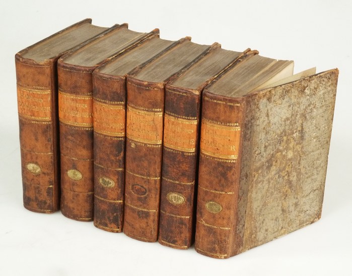 L. Holbergs Comedier 6 Bände. Udgivne af R.L. Rahbek. Kiöbenhavn, Jens Hostrup Schultz, 1824-27. . Halblederbände der Zeit. 16°. Hübsche Reihe, Kapitale nur mit geringen Läsuren. Ecken bestoßen und Berieben. Besitzvermerk.