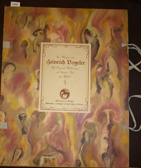 Die Märchen von Heinrich Vogeler. Sechs Original-Radierungen mit kurzem Text zum Geleit. Münster i. Westf., Car Frye, [1924]. Folio. Doppelbl. Titel u. Text u. 6 Taf. m. ORad. v. Vogeler lose in marmorierter OPp.-Mappe m. Deckelschild u. Schließbändern. In kleiner Auflage erschienen. Text von Erna Regina Löwenwarter. - Die Klappen der Mappe sowie das Titelbl. mittig stärker gebräunt, sonst wohlerhalten.
