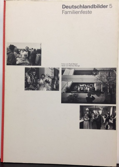 Deutschlandbilder 5: Familienfeste. Eine Ausstellung aus der Serie "Deutschlandbilder" - ein Selbstporträt der Bundesrepublik Deutschland in zwölf Folgen. Fotos von Rudie Meisel. Texte von Marlies Menge. Mit eigenhändiger Widmung des Fotografen auf dem Titelbild, datiert Hamburg, im März 1987. Stuttgart, Institut für Auslandsbeziehungen 1986. 48 S. Mit zahlreichen s/w Fotos von Rudi Meisel. 4°, OHLwd. mit Deckelillustration. Layout: Otl Aicher und Hans Neudecker. - Inhalt: Taufe in Keitum/Sylt; Konfirmatioon in Hamburg; Hochzeit im Dorf Schöffau, Oberbayern; Goldene Hochzeit in Essen-Schonnebeck, Nordrhein-Westfalen. - Rudi Meisel (geb. 1949) studierte Fotografie an der renommierten Folkwangschule in Essen bei Otto Steinert. - Einbandkanten kaum berieben, die letzten 5 Blatt und Rückendeckel in unterer Ecke minimal bestoßen, sonst gutes Exemplar.
