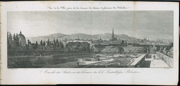 Beschreibung von Wien. Achte Ausgabe. Verbessert und vermehrt von Franz Tschischka. Wien, Mayer & Co., 1841. (2), XXVIII, 561, (3) SS. Mit gest. Titelvignette, 12 gest. Tafeln (dav. 1 mehrf. gefalt. Panorama) und 1 Faltplan ("Plan von Wien mit seinen XXXIV. Vorstädten. Verlag von Th. Grieben, Berlin"). Bedr. Originalpappband. 12mo. Achte Ausgabe des beliebten "Wiener Fremdenführer[s], den bezeichnend genug eigentlich ein Ausländer schrieb" (Gugitz, in: Jb. d. Grillparzerges. 16, 212). Der so vielseitige wie nach Wurzbachs Worten "specifisch-wienerische" Schriftsteller Pezzl (1756-1823), aus dem Niederbayerischen gebürtig, war Sekretär und Bibliothekar beim Staatskanzler Fürst v. Kaunitz, bevor er durch die Heirat mit einer vermögenden Frau zu einer geistvollen Figur der Wiener Gesellschaft wurde. - Papierbedingt teils leicht braunfleckig: Einband berieben. Am vorderen Innendeckel Exlibris "Ex libris Friderici Goldschmidtii Viennensis"; am hinteren Innendeckel Etikett "Ex Bibliotheca F. W. Goldschmidt"; zuletzt in der Viennensia-Sammlung Josef Ringer. - Gugitz III, 12056. Nebehay/Wagner 503. Engelmann 1036.
