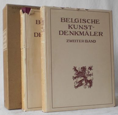 Belgische Kunstdenkmäler. München: Bruckmann. 1923. X, 320, 327 S. 4°. Mit zus. 83 Tafeln und 569 Textabbildungen. 2 Bände. Kassette gebräunt und fleckig; Schutzumschläge stark lädiert (1 Schutzumschlag zerrissen, der andere stark angerändert); Schnitt stockfleckig.